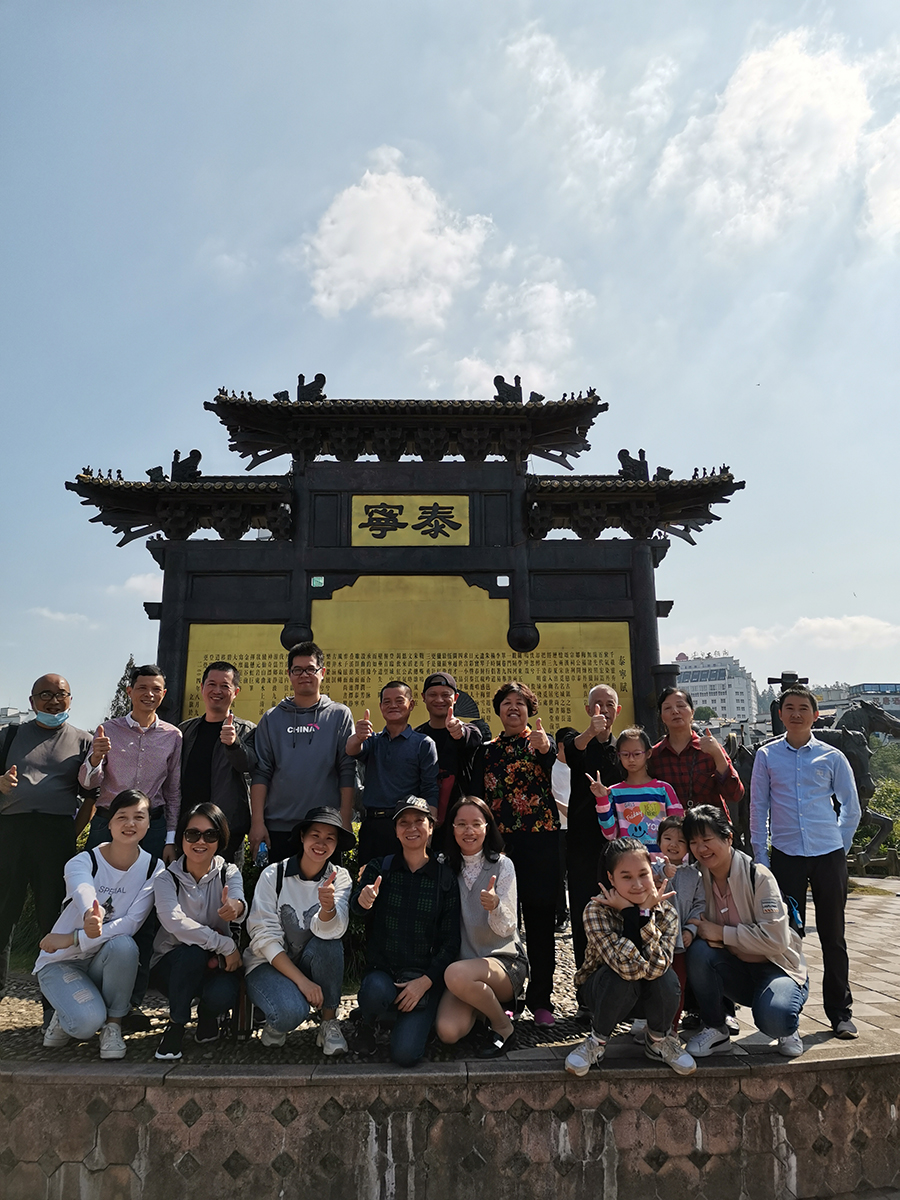 經過1個多小時的行程,黨支部一行來到了泰寧古鎮的古街。首先映入眼簾的是一組紀念中國工農紅軍群雕雕塑。土地革命戰爭時期,中央工農民主政府建立閩贛省,泰寧是中央蘇區的21個組成縣之一,中國工農紅軍總部曾設在泰寧,泰寧一度成為中國革命的指揮中心。黨員們在紅軍雕塑群前追思歷史,緬懷先烈,并集體合影留念。