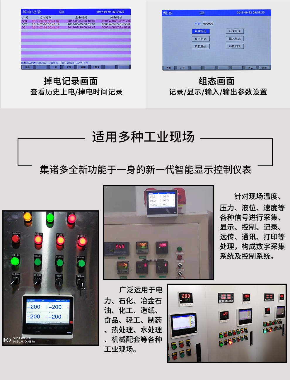 彩色無紙記錄儀/溫度記錄儀采用新型大規模集成電路,對輸入、輸出、電源、信號采取可靠保護和強抗干擾設計。機身短節約空間,深度僅為76mm。12路萬能信號輸入,可帶12路報警輸出,6個變送輸出,RS485通訊接口,以太網接口,微型打印機接口和USB接口,SD卡插座。