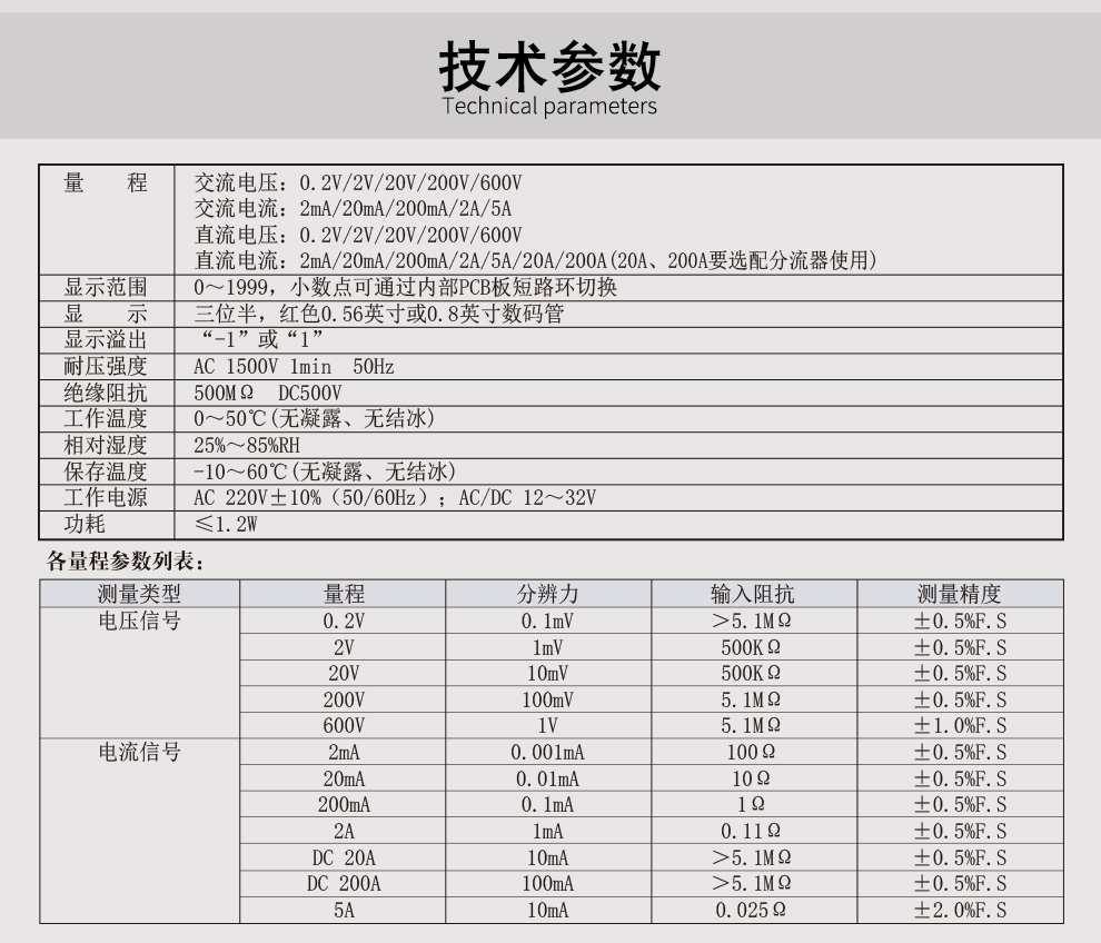 電流表電壓表大屏顯示、精準(zhǔn)測量,多種電壓/電流量程可選、強(qiáng)抗干擾