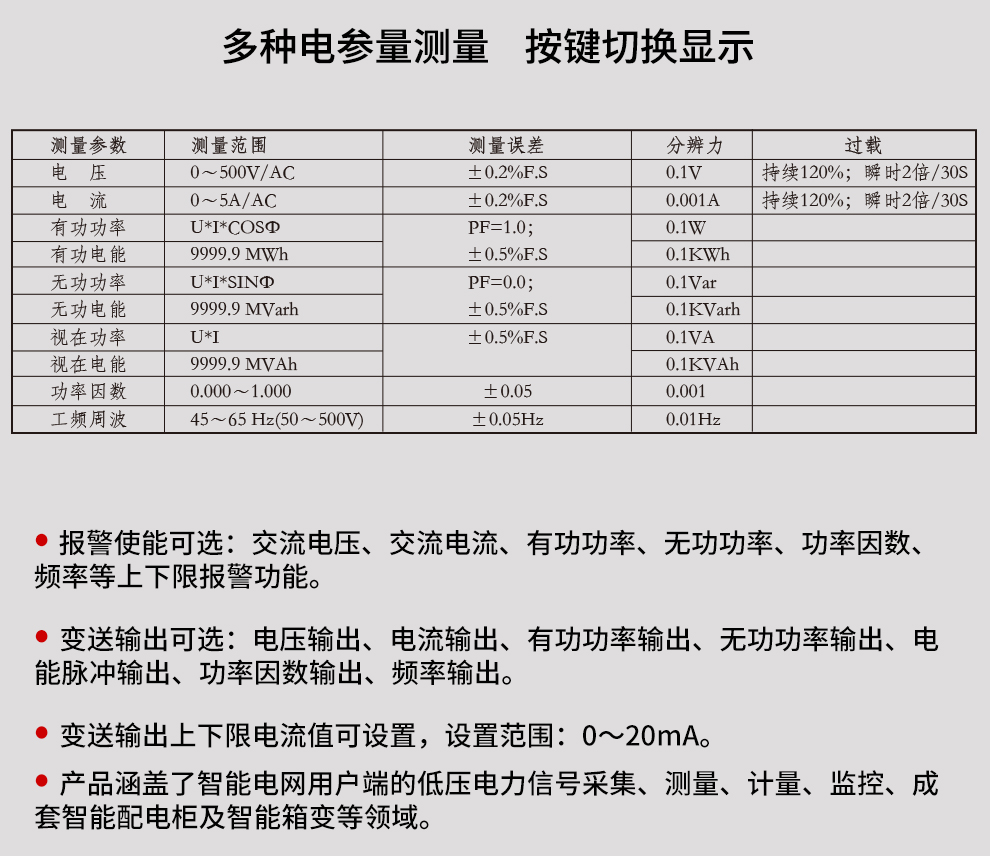 單相電量表為新一代可編程智能儀表,它采用大規(guī)模集成電路,應(yīng)用數(shù)字采樣技術(shù),對(duì)單相電氣線路中的電壓、電流、有功、無(wú)功、功率因素、相位值、頻率、有功電能、無(wú)功電能及視在功率進(jìn)行實(shí)時(shí)測(cè)量與顯示。