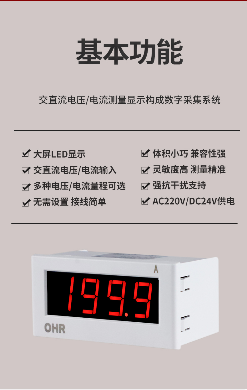 虹潤公司是專業(yè)生產(chǎn)數(shù)字電壓表的國家專精特新“小巨人”企業(yè)。生產(chǎn)的電壓/電流表,具有大屏LED顯示,交直流電壓/電流輸入,免設置易接線,性價比高等特點。產(chǎn)品獲得一種交流信號變送器、交直流信號轉換電路、基于DCS技術的盤裝式三相電量表等3項國家發(fā)明專利,主持起草現(xiàn)場設備集成等5項智能制造國家標準,物聯(lián)網(wǎng)電流變送器規(guī)范、物聯(lián)網(wǎng)總體技術智能傳感器特性與分類等2項國家標準,以及直流漏電流傳感器規(guī)范、通信系統(tǒng)多通道數(shù)據(jù)采集控制終端規(guī)范等2項軍用標準,參與國際5G標準制定。產(chǎn)品廣泛應用于電力系統(tǒng)、工業(yè)制造、自動化設備、計量檢測等各種工業(yè)領域。